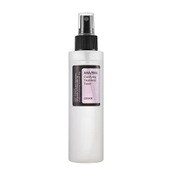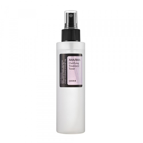 COSRX - AHA/BHA Clarifying Treatment Toner – jemné tonikum vhodné pro každodenní čištění pleti, založené na hydrolátu z bílé vrby, který slouží jako přírodní zdroj BHA kyseliny. Obsahuje také AHA (kyselinu glykolovou), jež má exfoliační účinky, čistí póry a přispívá k vyhlazení pleti. Přítomnost jablečné vody podporuje obnovu svrchní vrstvy pokožky, zatímco alantoin a panthenol snižují potenciální podráždění způsobené kyselinami a zároveň pomáhají tlumit zánětlivé procesy, které doprovázejí problematickou pleť. Tonikum napomáhá regulaci mazu, zmírňuje zarudnutí, sjednocuje barevný tón a dodává pokožce zdravější vzhled. Praktický sprej vytváří jemnou mlhu s velmi lehkou, sotva znatelnou vůní. Rychle se vstřebává, nezanechává lepkavý film a představuje ideální volbu pro mastnou a problematickou pokožku.