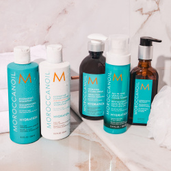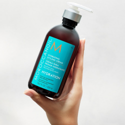 Moroccanoil Hydrating Styling Cream pro dokonalé vysušení vlasů kombinuje mimořádné pečující vlastnosti arganového oleje bohatého na antioxidanty a jemnou fixaci – výsledkem je produkt, který je vysoce účinný při vytváření hladkých účesů a univerzální pro všechny typy vlasů.