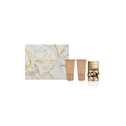 Dámská dárková kazeta - parfémová voda, tělové mléko a sprchový gel - Michael Kors Pour Femme je květinově-dřevitě-pižmová vůně, která vás zahalí do luxusu, sebevědomí a smaslnosti. Jako bohatý zlatý řetěz rozpálený sluncem prohřátou kůží, vyzařuje sofistikovanost, krásu a sílu prostřednictvím svých mnohovrstevných vonných tónů a výjimečně vytrvalé vonné stopy. Cesta začíná čerstvými tóny mandarinky, růžového pepře a černého rybízu. Tento šťavnatý a lákavý úvod probouzí smysly a dodává energii tělu i duši. Srdce vůně je luxusní a ženské, rafinovaná kytice jemného jasmínu a robustních růžových květů je v harmonické rovnováze jak s jiskřivě ovocnými svrchními tóny, tak se zemitě dřevitým akordem základu. Postupně odhaluje hlubokou a vytrvalou smyslnost vůně díky tónům základu – krémové vanilce, svůdnému pižmu a dřevitým listům pačuli.